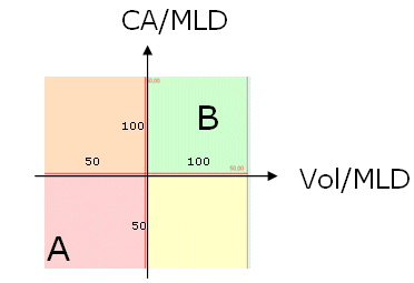On va appliquer le raisonnement vu précédent en fonction du linéaire occupé, sur 3 axes.L’axe des x : le volume des ventes par MLD ou MLS ou M²…L’axe des y : le chiffre d’affaires par MLD ou MLS ou M²…L’axe des z : la marge (avant+arrière par exemple) par MLD ou MLS ou M²…On obtiens 3 ratios que l’on à l’occasion de lire dans le MOUTON ou le FADY :